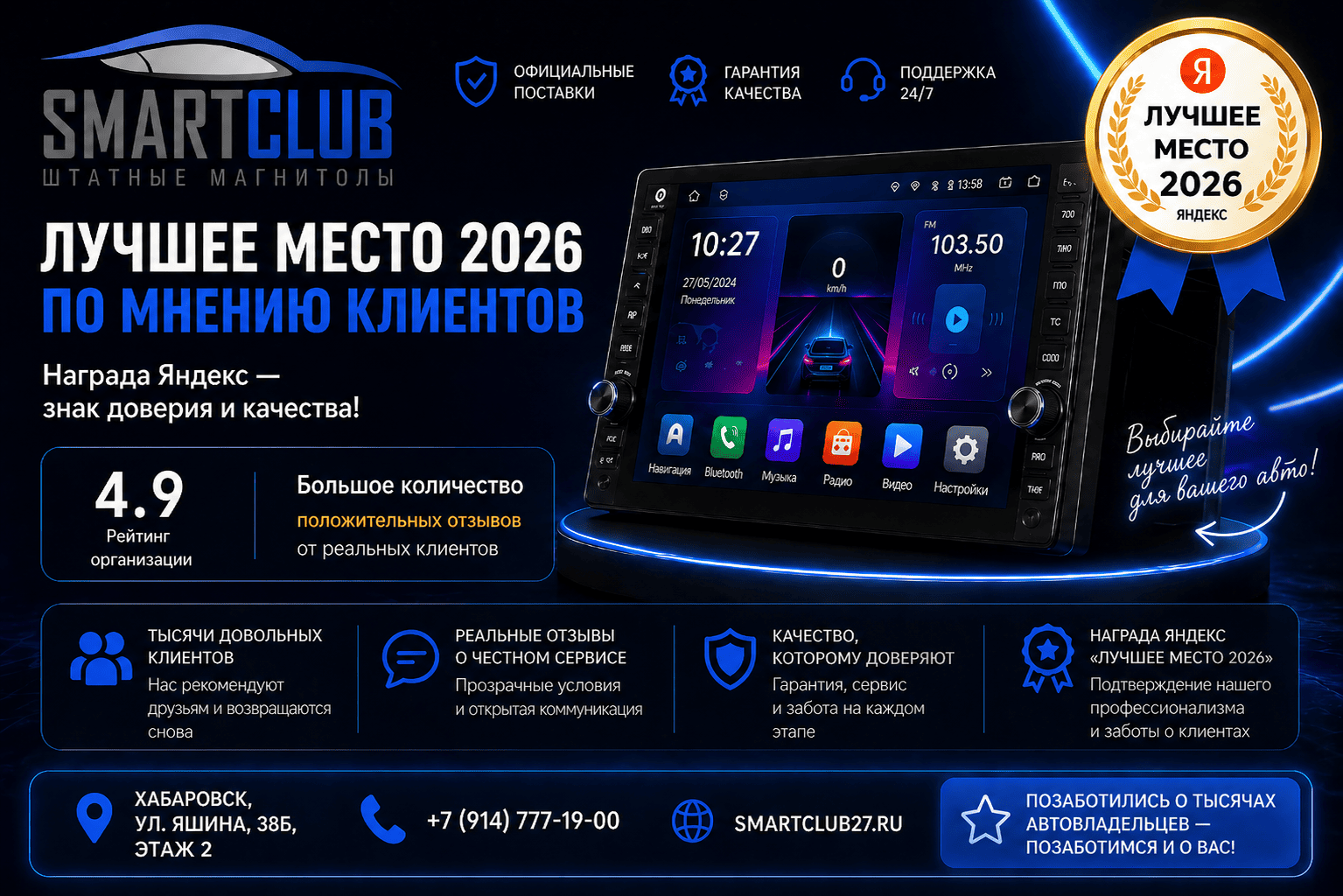 SmartClub27 — это надёжный поставщик Android магнитол и автозвука с 2017 года.